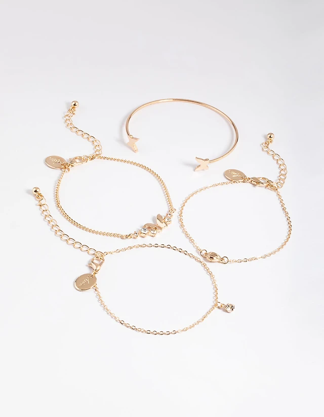 Gold Diamante Butterfly Twist Bracelet 4-Pack