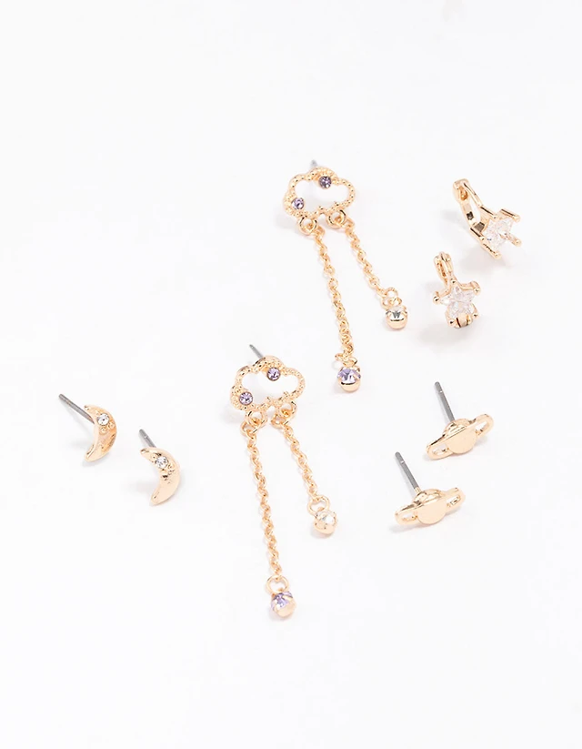 Gold Marbled Pearl & Bow Earrings 8-Pack