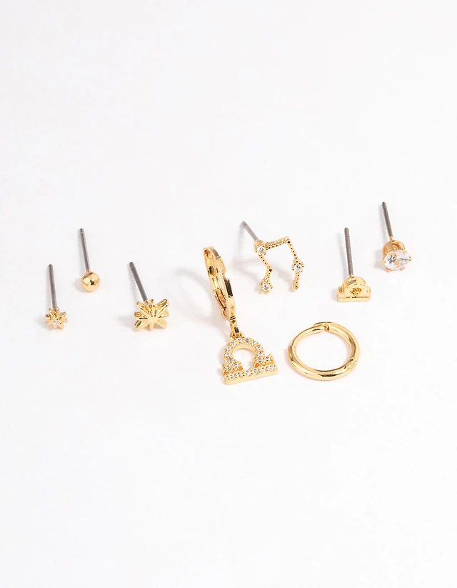 Gold Plated Sterling Silver Cubic Zirconia Flower Hoop Earrings