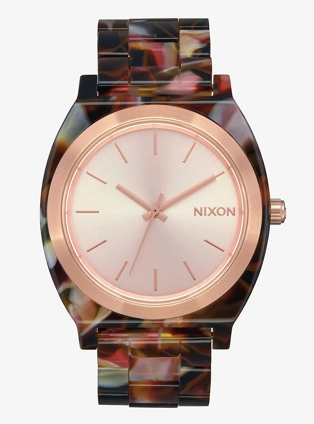 Nixon Time Teller Acetate Rose Gold Pink Tortoise Watch