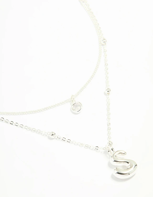 Silver Plated Cubic Zirconia & Bubble Letter L Layered Necklace