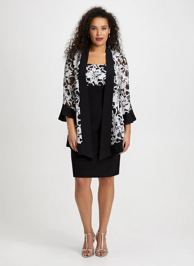 Sequin Dress & Jacket Set & Crystal Dangle Earrings