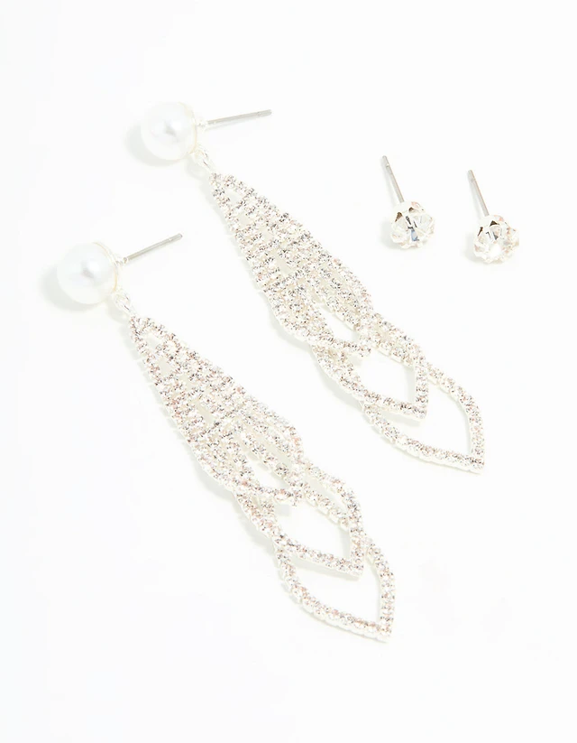 Silver Ornate Diamante Drop & Stud Earrings 2-Pack