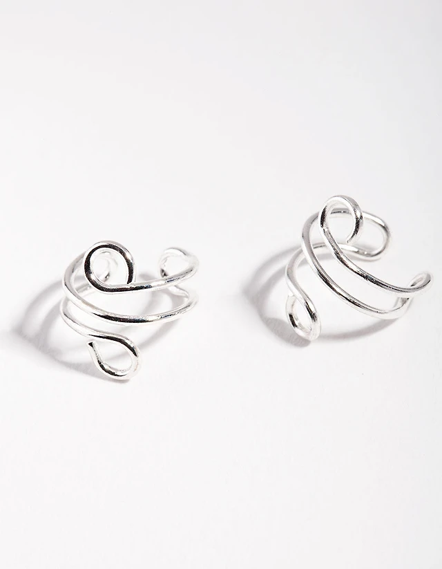 Harley ear cuffs, Round cut, White, Rhodium plated by SWAROVSKI