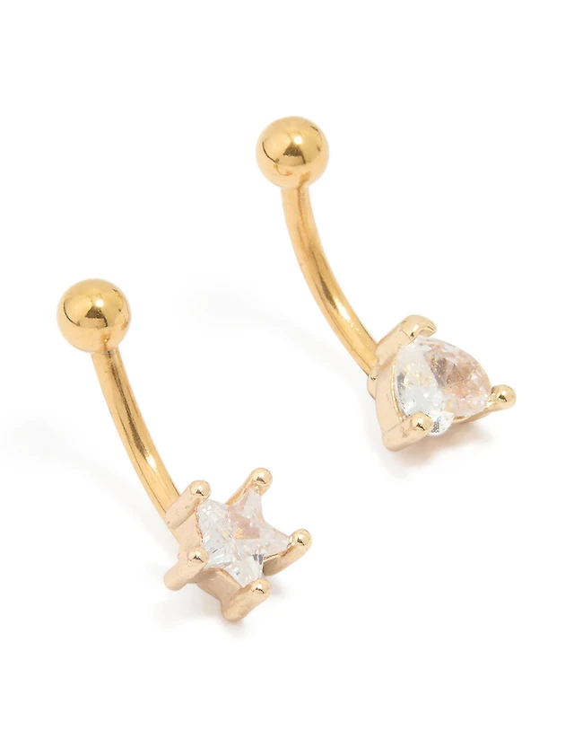 Gold Plated Surgical Steel Cubic Zirconia Ear & Body Jewellery Set