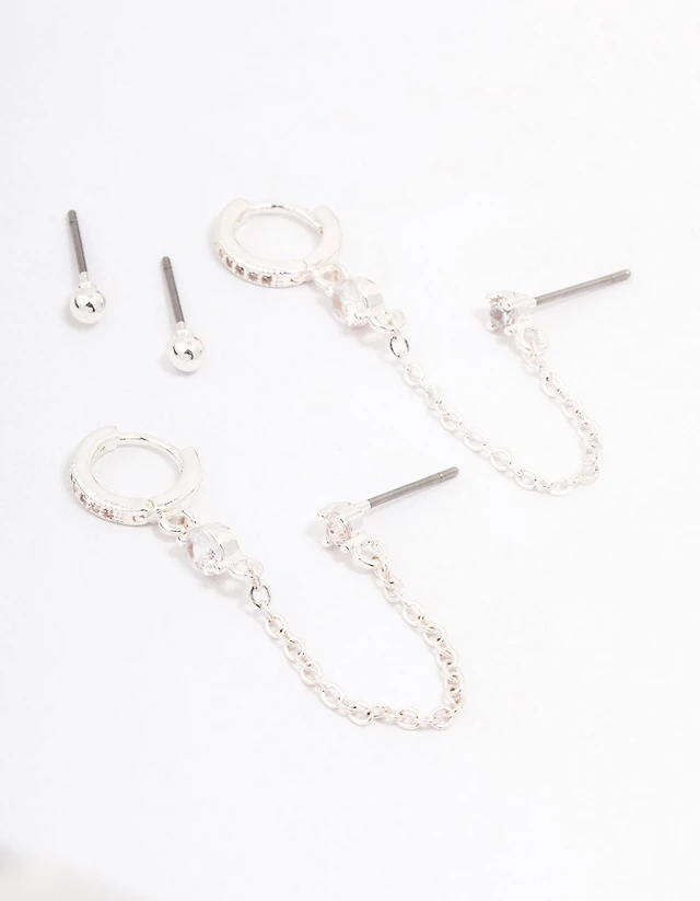 Silver Plated Brass Classic Cubic Zirconia Earring 3-Pack