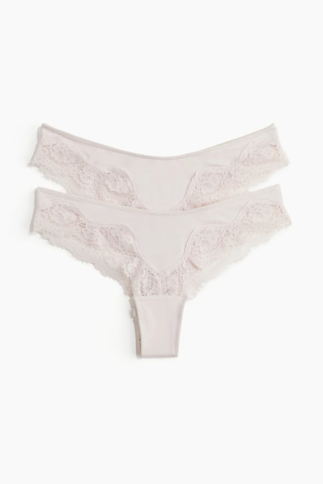 5-Pack Microfiber and Wide Lace Band Thong Panty