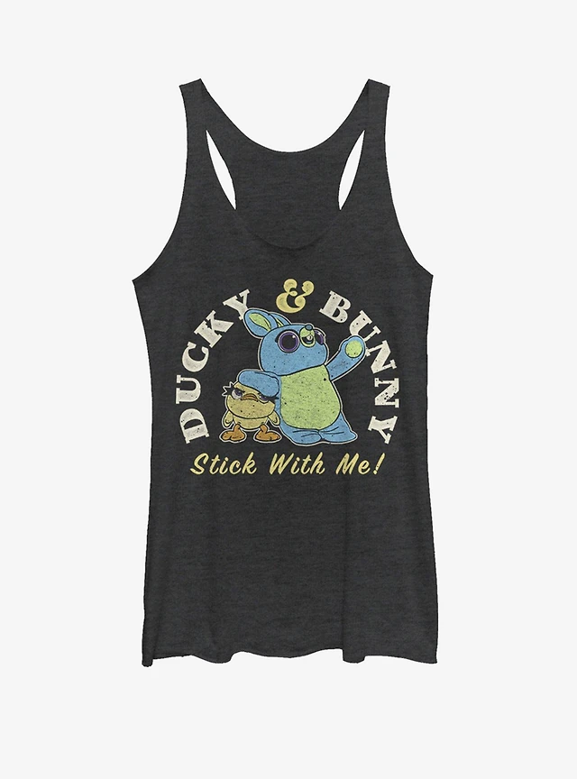 Disney Pixar Toy Story 4 Ducky And Bunny Brand Girls Black Heathered Tank Top