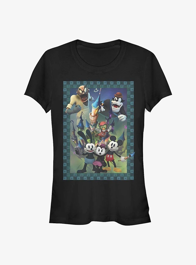Disney Epic Mickey Characters Group Poster Style Girls T-Shirt