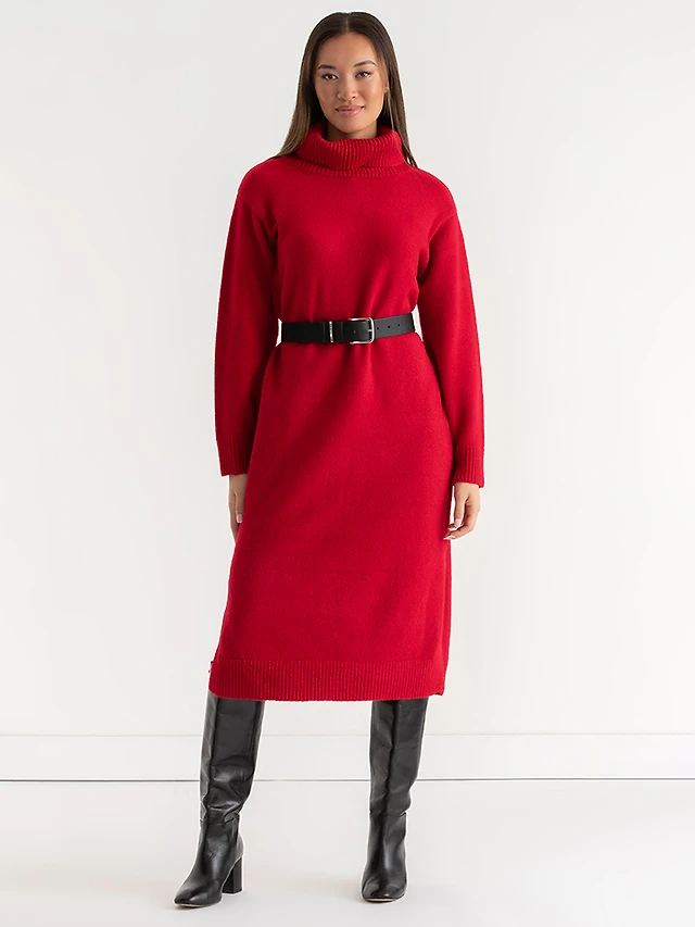 Ribbed Turtleneck Midi Sweater Dress
