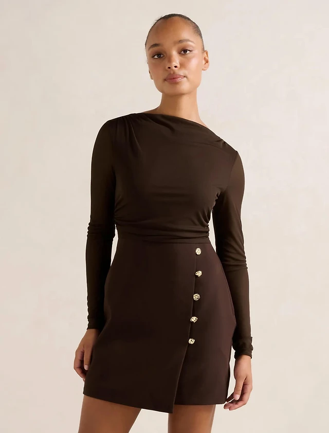 Kace Burgundy Ruched Off-The-Shoulder Maxi Dress