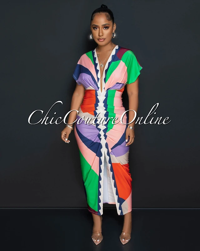 Millie Blue Teal Color-Block Cut-Out Maxi
