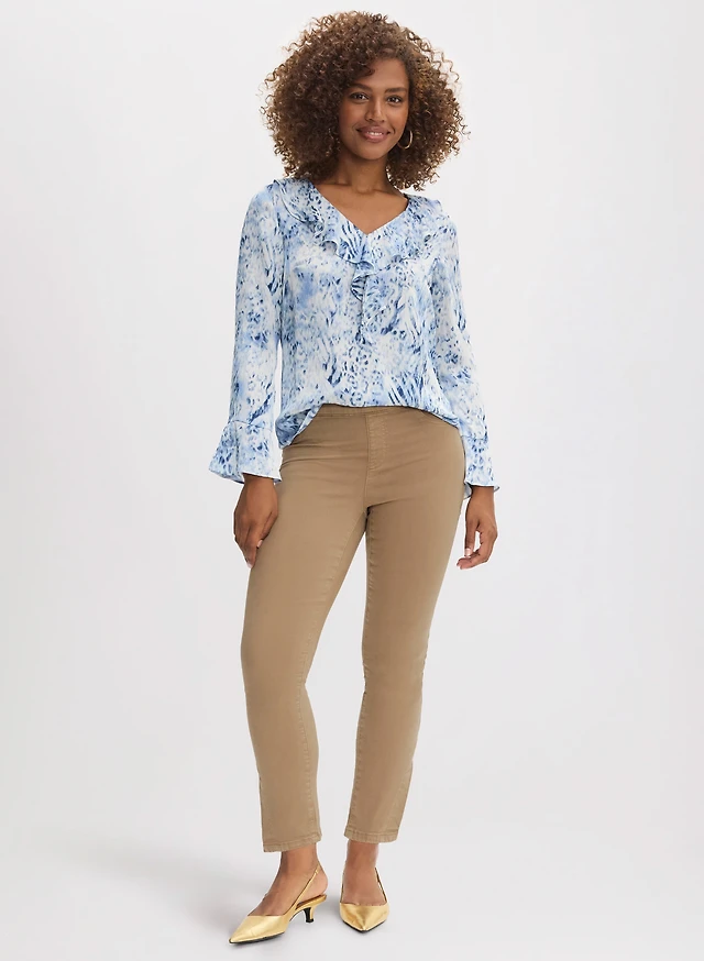 Short Sleeve Knit Gathered T-Shirt in Coral Animal