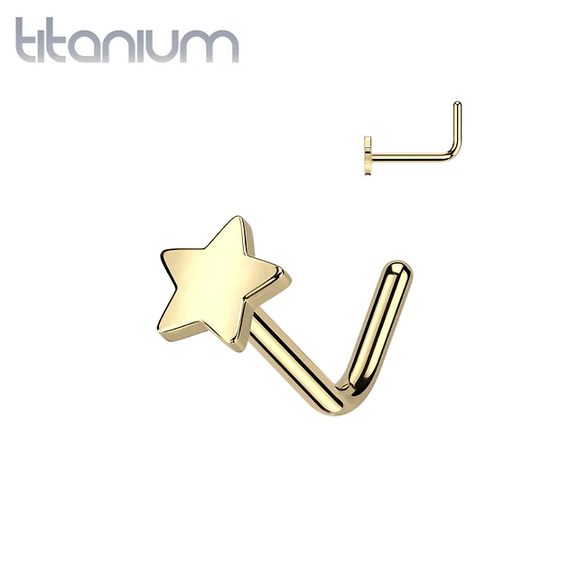 Implant Grade Titanium Gold PVD Star L-Shaped Nose Ring Stud