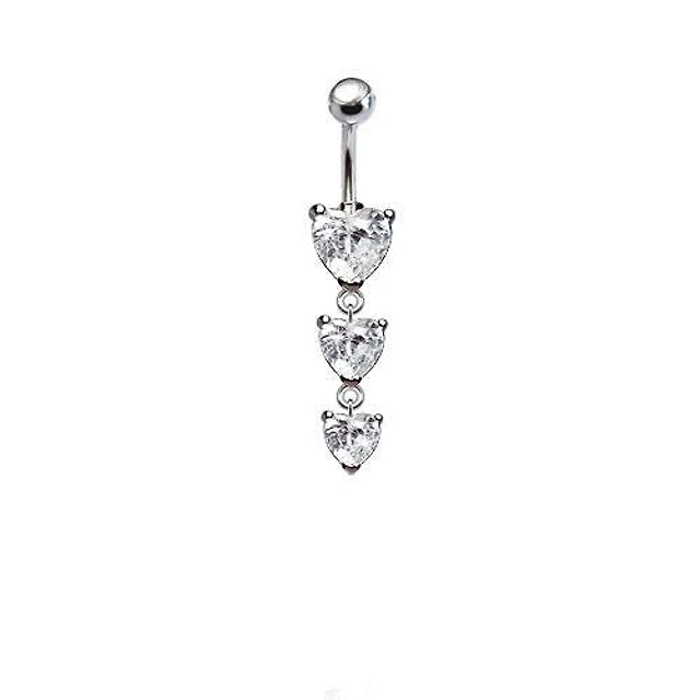 316L Surgical Steel Triple Heart CZ Dangle Belly Ring