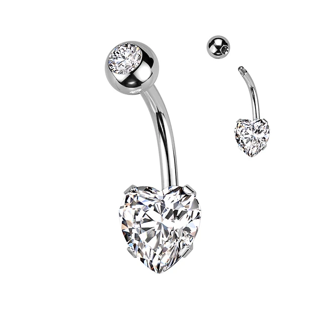 316L Surgical Steel White CZ Heart Shaped Non Dangle Belly Ring