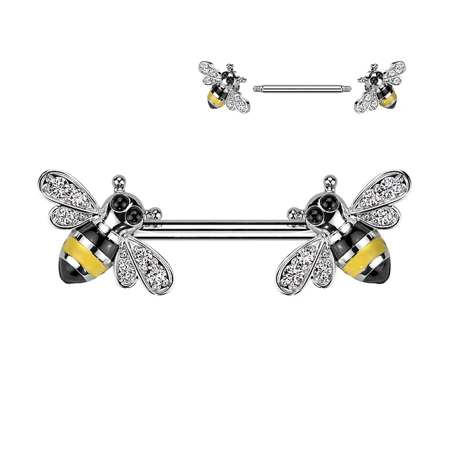 316L Surgical Steel Bumble Bee Nipple Ring Barbell