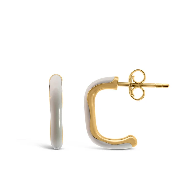 Cream Enamel Earrings in Gold Plated Sterling Silver