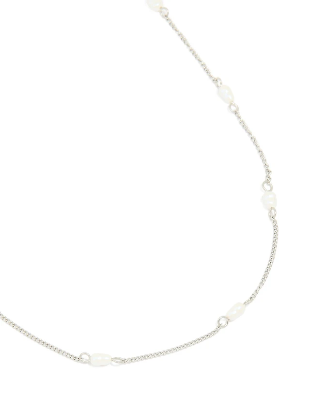 Silver Cubic Zirconia Freshwater Pearl Layered Necklace