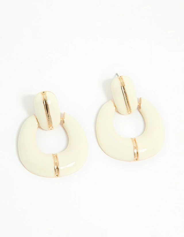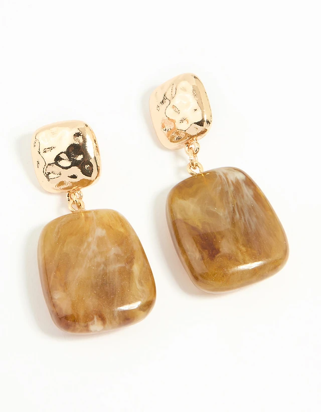 Gold Pink Marbles Stone Textured Oval Stud Earrings