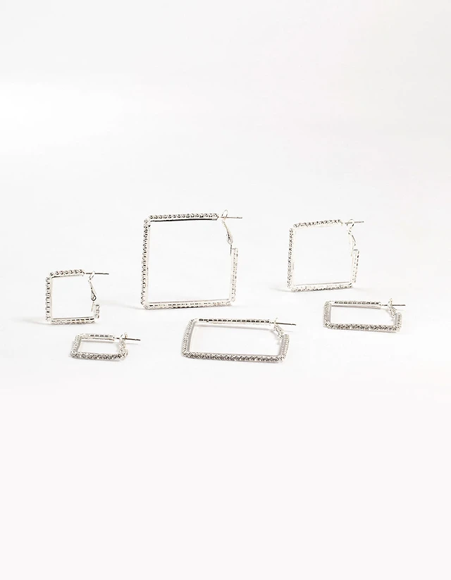 Silver Emerald Diamante Pavé Hoop Earrings 3-Pack