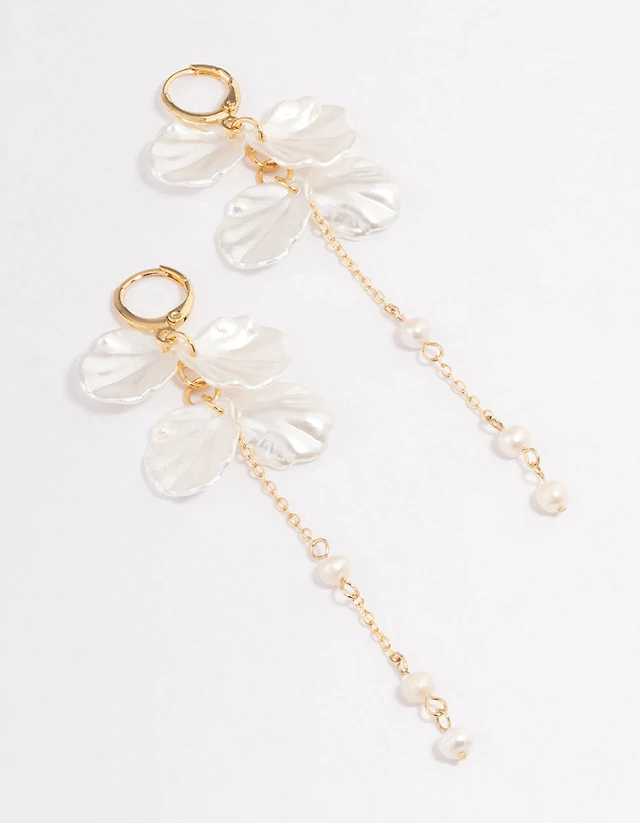 Gold Lilac Ethereal Flower Petal Drop Earrings