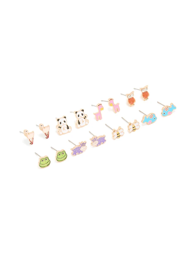 Gold Zoo Animal Stud Earrings 8-Pack
