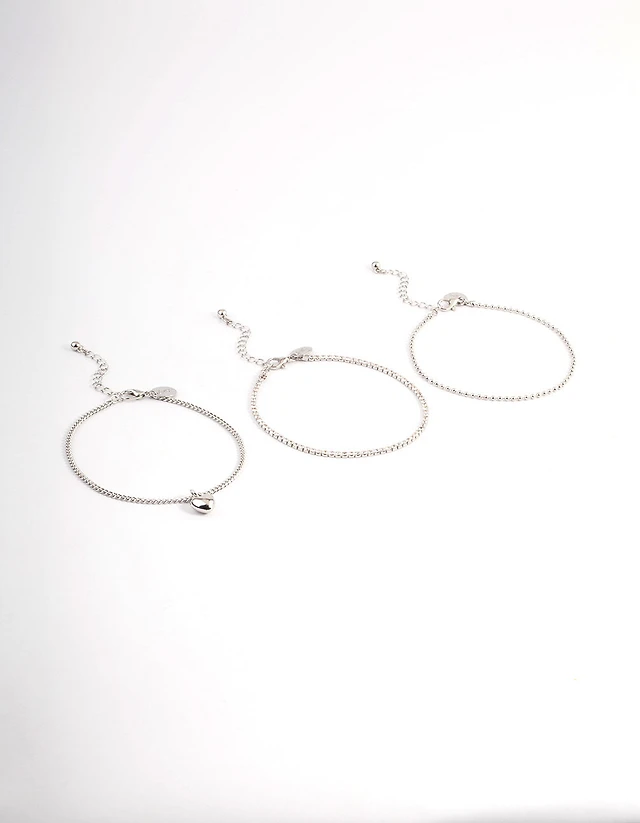 Silver Ball & Chain & Beaded Anklets 3-Pack