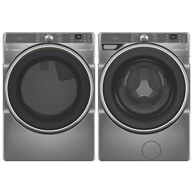 Whirlpool 5.8 Cu. Ft. Front Load Washer & 7.4 Cu. Ft. Electric Steam Dryer - Chrome Shadow