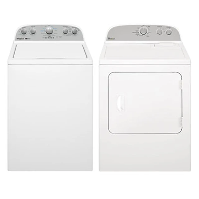 Whirlpool 4.8 Cu. Ft. High Efficiency Top Load Washer & Pet Pro 7.0 Cu. Ft. Electric Steam Dryer - White