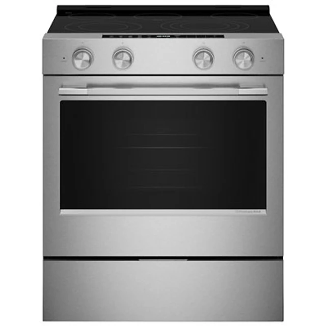 KitchenAid 30" 5.3 Cu Ft Fan Convection Slide-In Electric Air Fry Range (YKSES330SPS) -PrintShield Stainless Finish