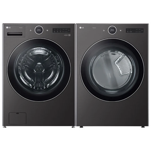 LG 5.8 Cu. Ft. High Efficiency Front Load Steam Washer & 7.4 Cu. Ft. Electric Steam Dryer- Black Steel