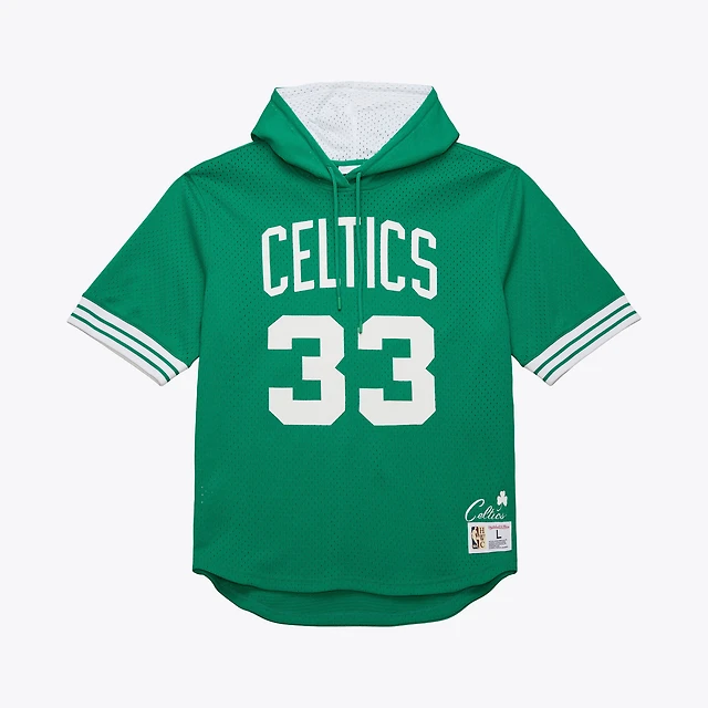 Men's Mitchell & Ness Larry Bird Kelly Green Boston Celtics Mesh Name Number Short Sleeve Hoodie
