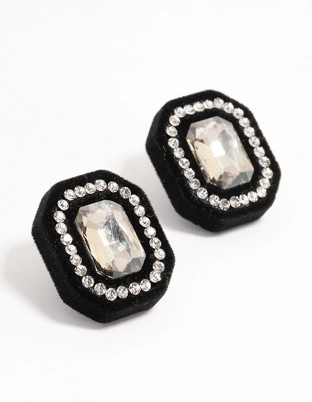 Black Velvet Fabric Diamante Stud Earrings