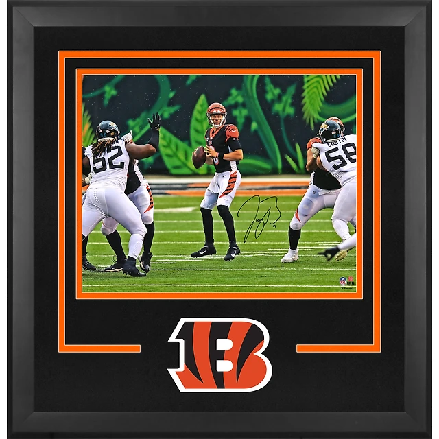 Joe Burrow Cincinnati Bengals Autographed Deluxe Framed 16" x 20" Black Jersey Standing In Pocket Photograph
