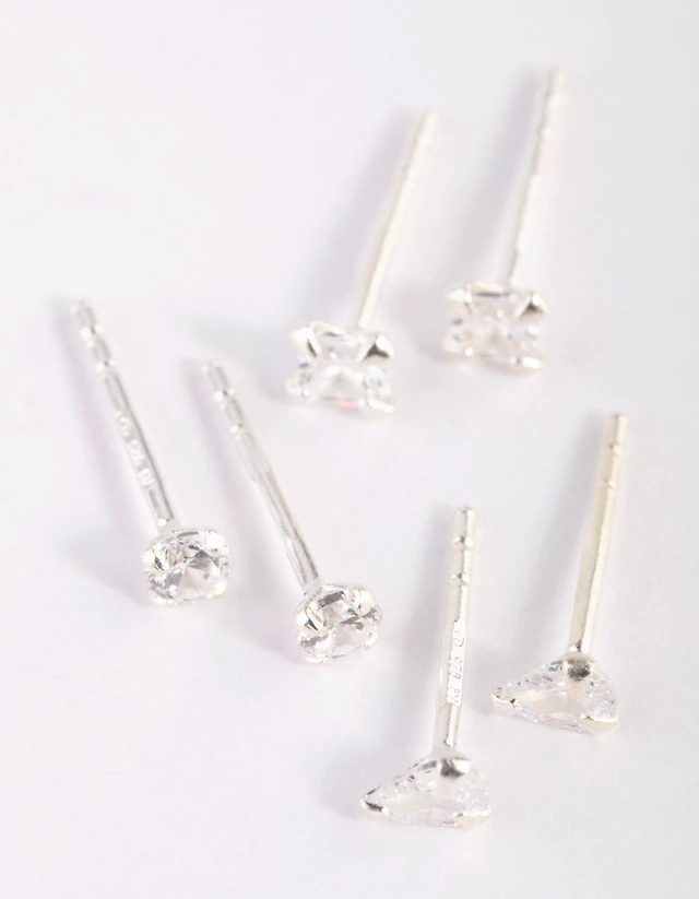 Silver Pearl Stud & Hoop Earrings 3-Pack