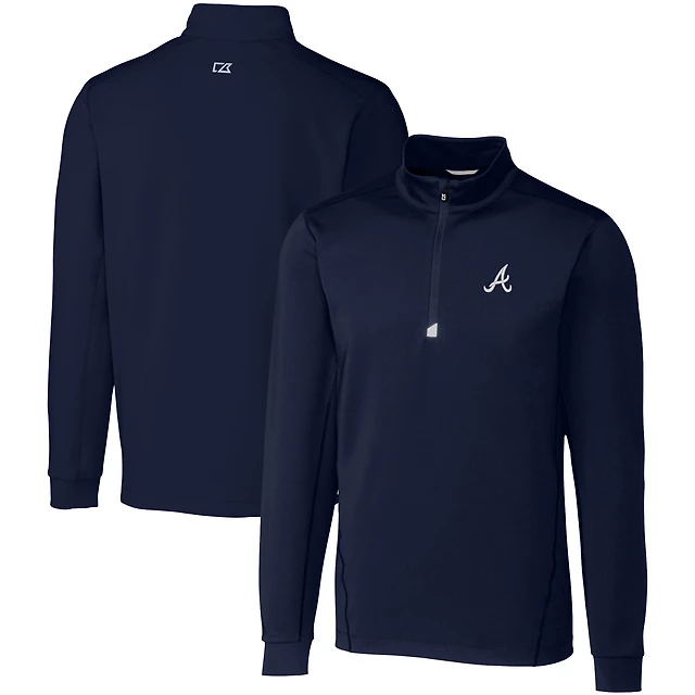 Men's Cutter & Buck Navy Atlanta Braves Big Tall Traverse Stretch Quarter-Zip Pullover Top