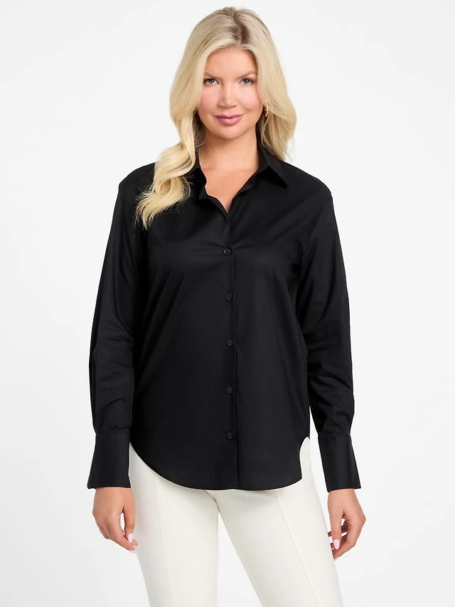 Sabalia Off-White Rhinestones Bow Accent Shirt