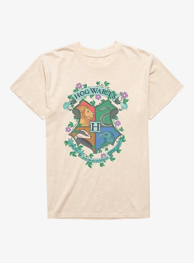 Harry Potter Hogwarts Crest Flowers Mineral Wash T-Shirt