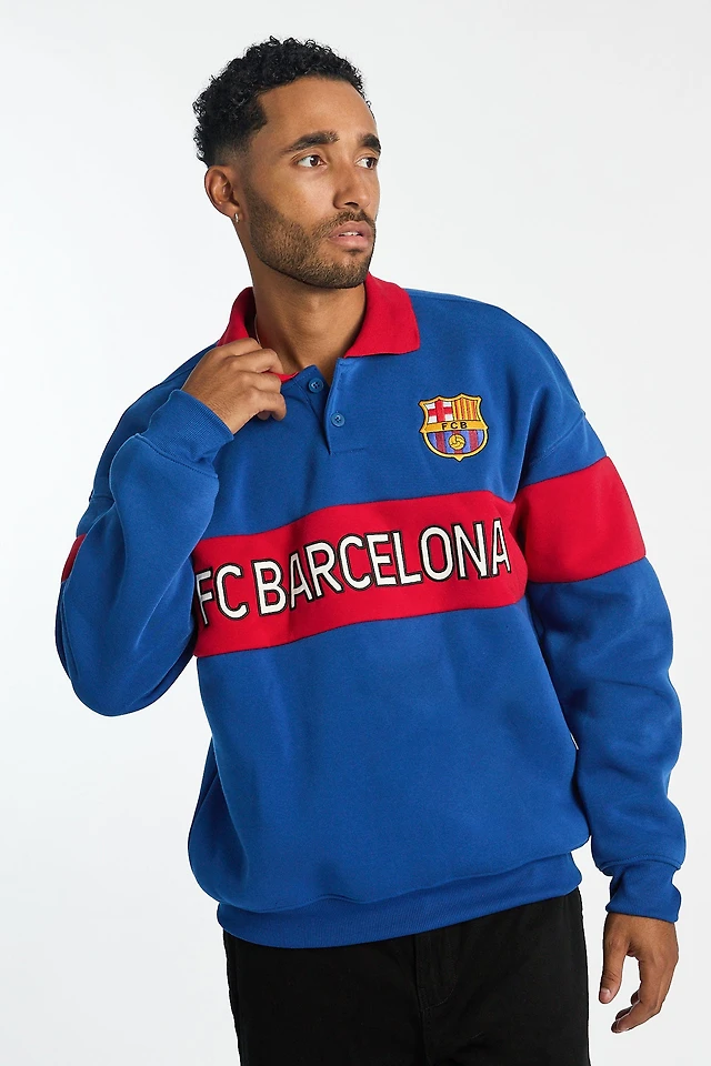 Mens FC Barcelona Colour Block Polo Sweatshirt - Blue /
