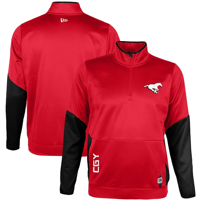Men's New Era Red Calgary Stampeders Sideline Performance Fleece Quarter-Zip Top