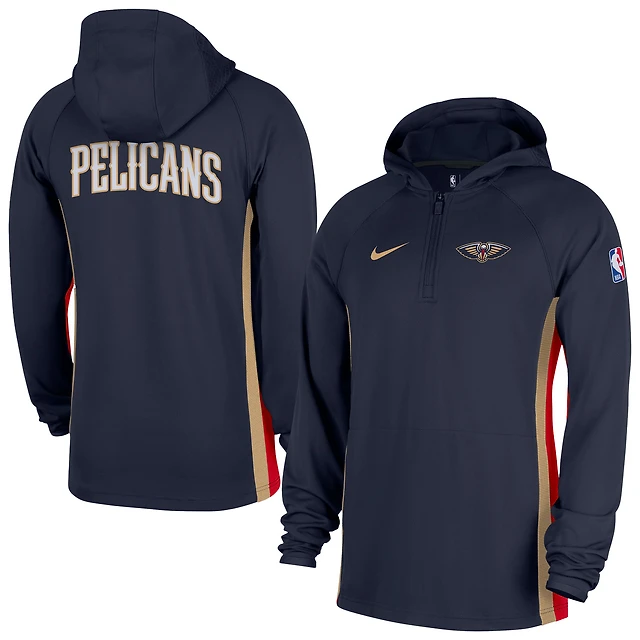Men's Nike Blue Detroit Pistons Authentic On Court Zone Quarter-Zip Dri-FIT Hoodie Jacket