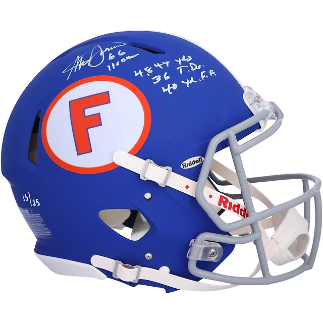 Steve Spurrier Florida Gators Autographed Riddell Throwback Royal Speed Authentic Helmet with Multiple Inscriptions - Limited Edition of 25
