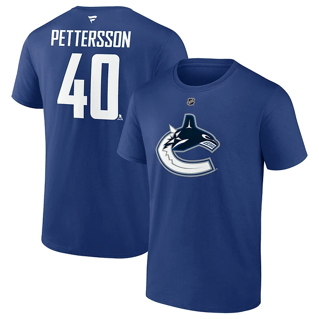 Men's Fanatics Elias Pettersson Blue Vancouver Canucks Logo Authentic Stack Name and Number - T-Shirt
