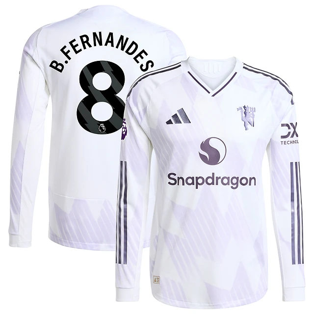 Men's adidas Bruno Fernandes White Manchester United 2025/26 Away Authentic Long Sleeve Player Jersey