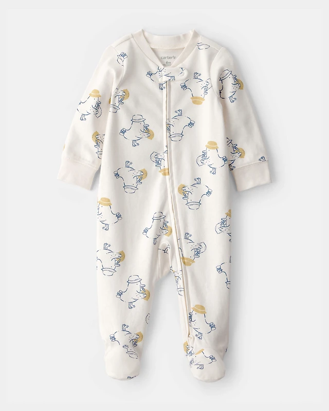 Baby Duck 2-Way Zip 100% Cotton Sleeper - Cream