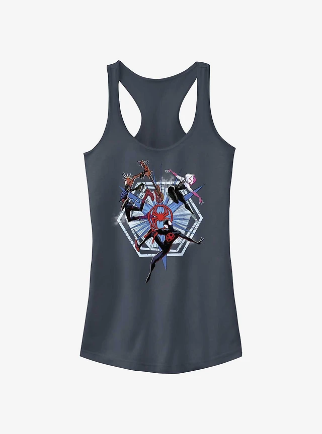 Marvel Spider-Man: Across The Spiderverse Trio Badge Spider-Punk Miles Morales Spider-Gwen Girls Tank