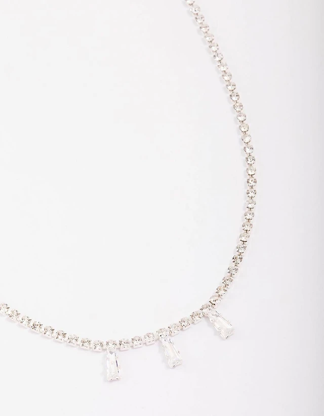 0.15 CT. T.W. Baguette and Round Diamond Bar Necklace in 10K Gold