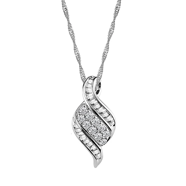 0.25 CT. T.W. Baguette and Round Diamond Double Marquise Frame Pendant in 10K White Gold