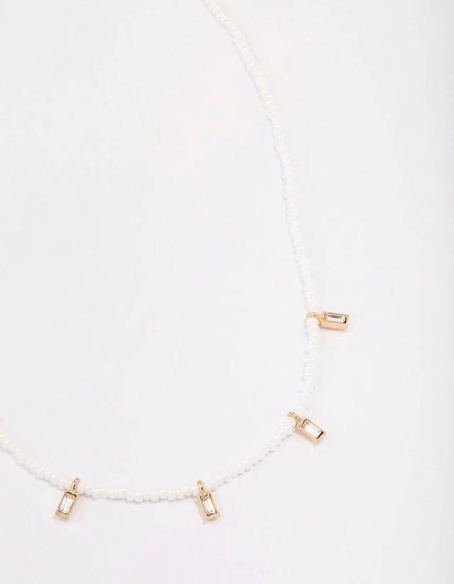 Gold Plated Cubic Zirconia Dainty Baguette Layered Necklace